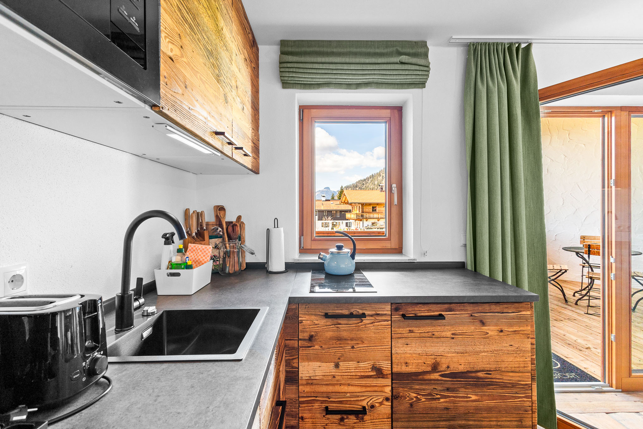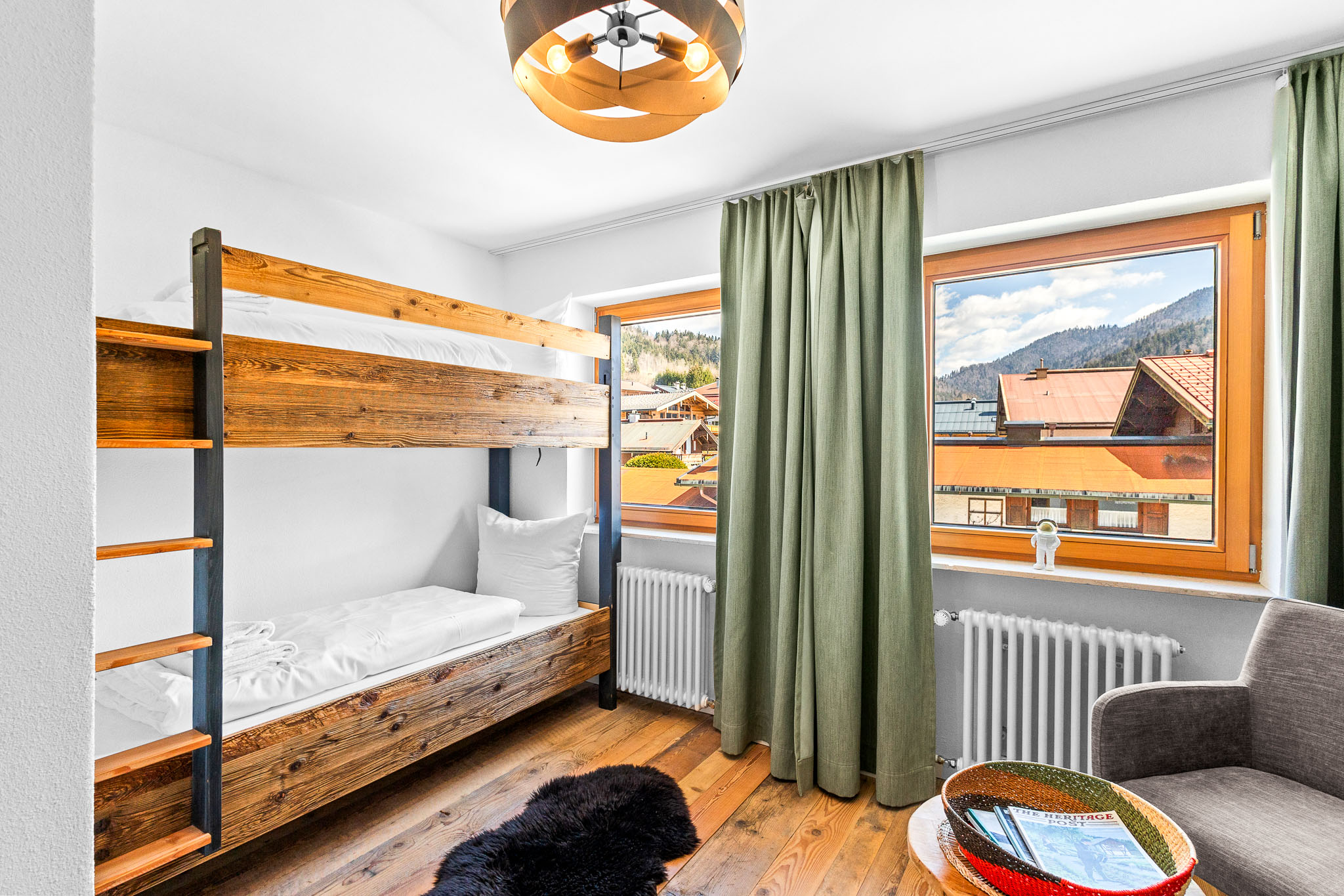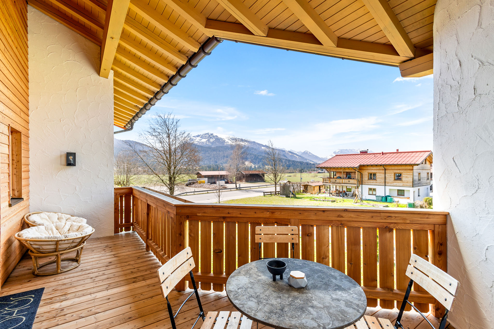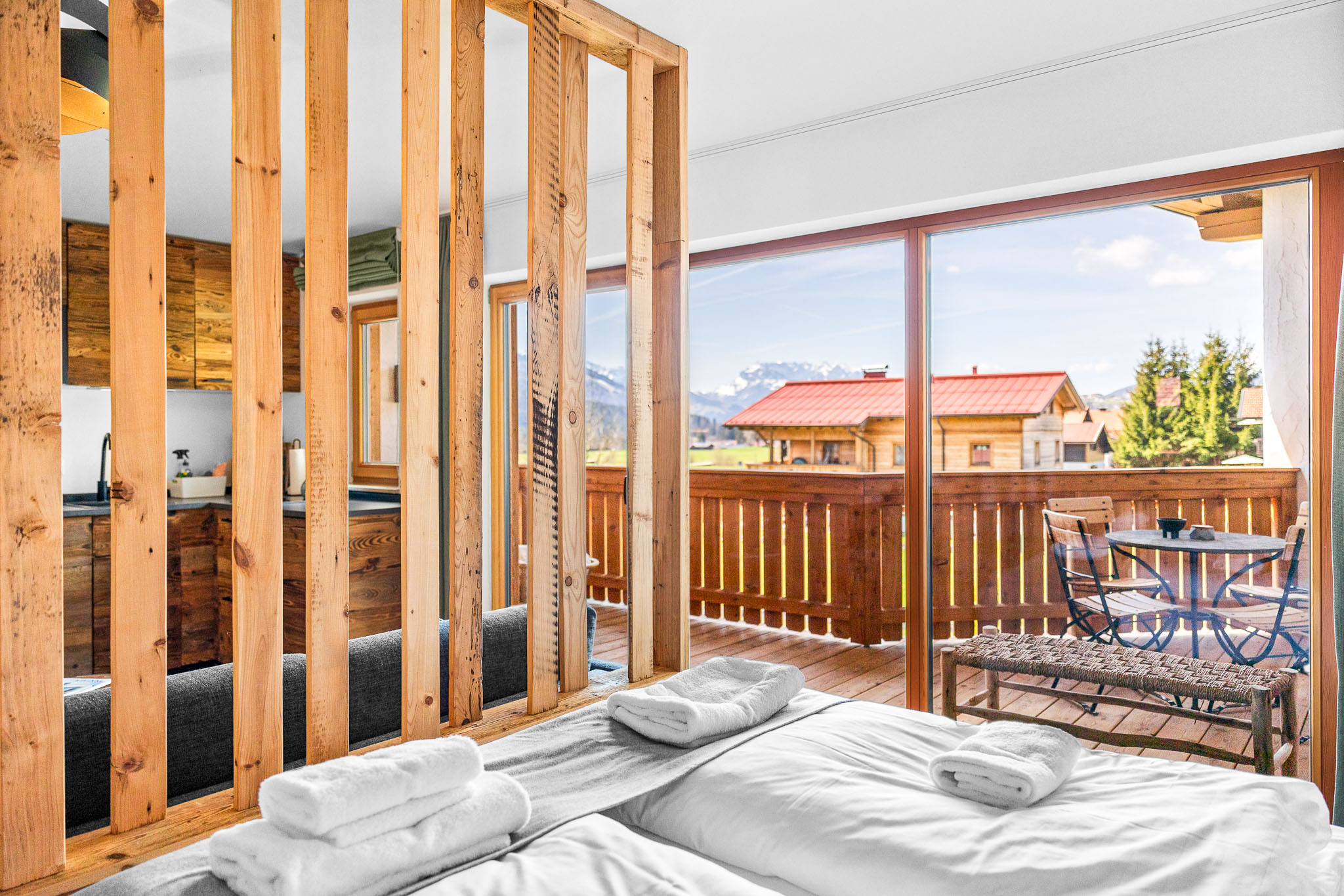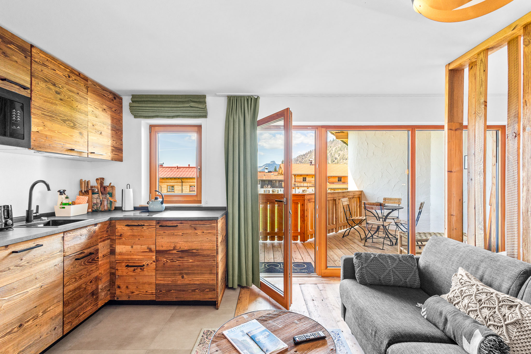 Willkommen in unserem großzügigen Atelier Wilder Kaiser in Reit im Winkl! Diese charmante Unterkunft bietet 53 qm Wohnfläche und einen herrlichen Balkon mit Blick auf die Berge. Das Studio ist mit einem King-Size Boxspringbett und einem Schlafsofa ausgestattet, ideal für Familien. Das separate Schlafzimmer bietet euch ein Etagenbett für 2 Personen.