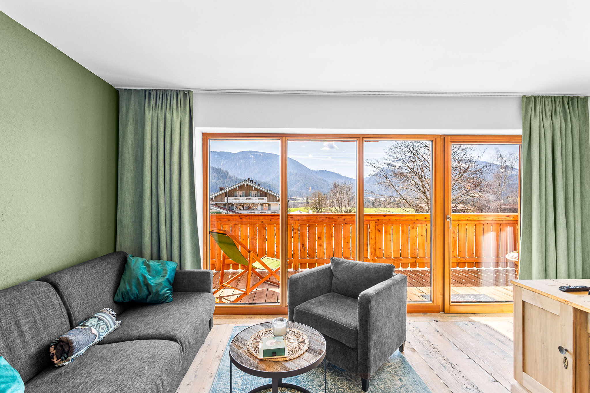 Willkommen in unserem Studio Unterberg in Reit im Winkl! Diese charmante Unterkunft bietet 42 qm Wohnfläche und einen herrlichen Balkon mit Blick auf die Berge. Das Studio ist mit einem King-Size Boxspringbett und einem Sofabett ausgestattet, ideal für Familien.
